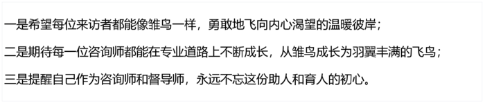 “雏昕”这个名字,蕴含着周家琦博士对心理咨询事业的深刻理解和美好愿景。